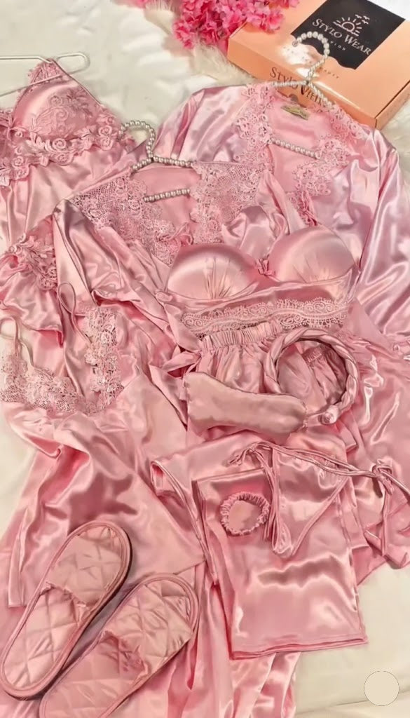 8Pc Luxury Silk Bridal Nightwear Set for Women
